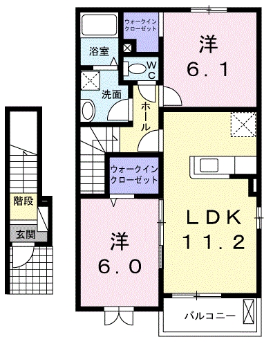 | 間取り詳細 | LDK11.2 洋6.1 洋6 | 日当たり | 南西 |