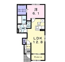 | 間取り詳細 | LDK12.8 洋6.1 | 日当たり | 南 |